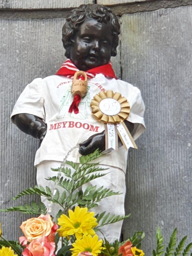 Op de hoek van de Stoofstraat en de Eikstraat staat de kleine fontein die inmiddels iconisch is geworden: ‘Manneken Pis’. Deze toeristische trekpleister was vroeger een belangrijke drinkwatervoorziening voor de wijk. In 1619 werd het bronzen beeldje gemaakt door Hiëronymus Duquesnoy de Oudere. Omdat het beeldje al een paar keer gestolen is, wordt het origineel tegenwoordig in het Museum van de stad Brussel bewaard en staat bij de fontein een replica. Het voortdurend plassende knaapje heeft vaak kleding aan, gerelateerd aan een bijzondere bijeenkomst of gebeurtenis. Deze traditie ontstond in 1698 tijdens een bezoek van Maximiliaan van Beieren. Zijn garderobe is te bezichtigen in het museum Garderobe MannekenPis (Eikstraat 19). Overigens heeft het manneke tegenwoordig ook een vrouwelijke tegenhanger: Jeanneke Pis. Je vindt haar in de Getrouwheidsgang /Impasse de la Fidélité.